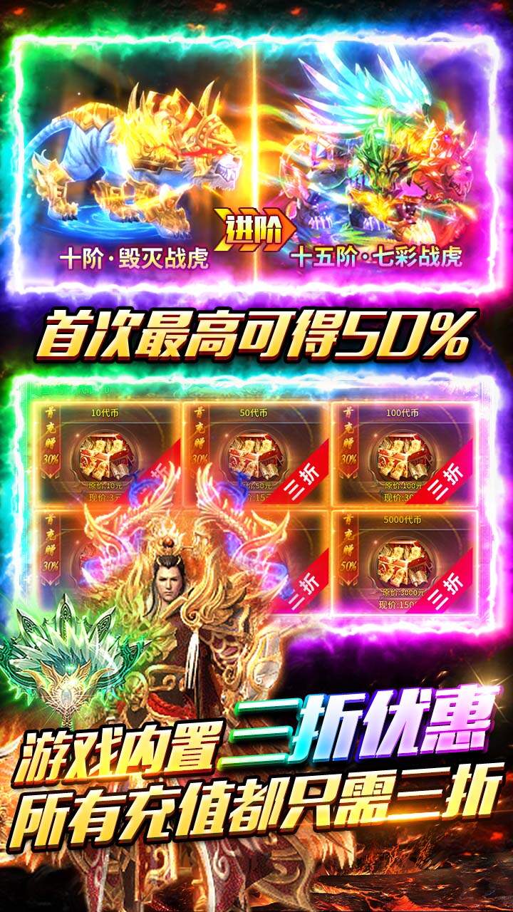 充值比例:1元=1000灵符 1.上线福利:每天上线送328元、成长弓弩、赤月血石、自动回收/拾取/使用卷 2.免费会员:击杀怪物赠送会员,6级会员特权 3.首爆奖励:海量灵符和元宝等你来爆 4.多变狂暴:暴怒、撸怪、护体、吸血四大狂暴 5.全新版本:本服爆率全开,游戏内所有材料装备皆可打怪掉落 6.免费特权:充值内置3折福利,充值永久3折顽石英雄#复古合击红包版#截图