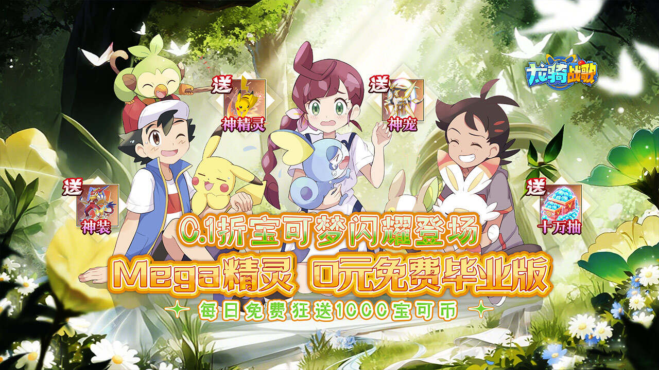 《龙骑战歌》0.1折免费毕业版,免费豪送十万抽!版本毕业精灵每日免费抽,超千真充宝可币每日免费领! 众多宝可梦精灵组合及绚丽的技能,让玩家能融入到幻想世界中增加游戏和战斗的沉浸感,Mega进化,精灵突破Mega形态,解锁全新技能!在全新的地点,遇见全新的伙伴。朝着梦想与冒险的宝可梦世界Let'sGo!